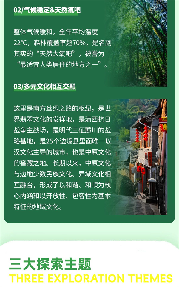 300年后,中国地理学家胡焕庸以此为端点,“黑河--腾冲线”划出两个迥然不同自然和人文地域。从此这个名不见经传的边境小城世界驰名。马帮文化、侨乡文化、翡翠文化、家国文化……汇聚成了具有多元文化特点的“腾越文化”。