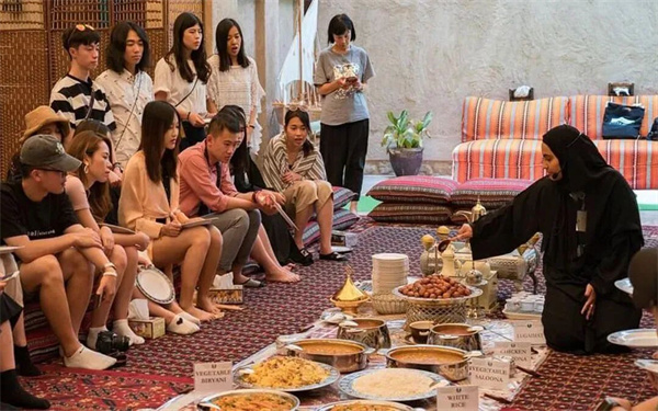 通过非正式的传统文化餐家宴,提供了一个独特的了解阿拉伯传统文化的机会。我们将坐在庭院里的贝都因风格坐垫上,一边聆听主人生动讲述阿联酋的传统与历史,现场解答疑问,一边品尝正宗的阿拉伯咖啡、椰枣、茶以及各种美味的当地菜肴,揭秘阿拉伯饮食、服饰等传统文化的神秘面纱。