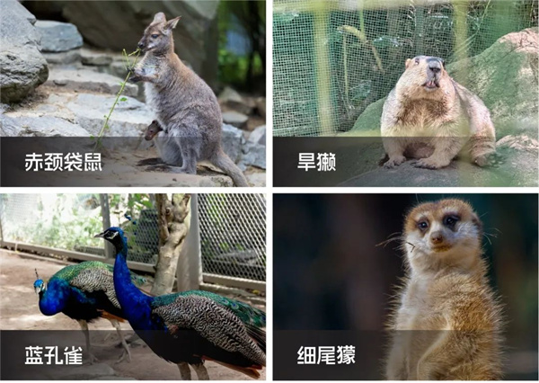 分布于新西兰的赤颈袋鼠、小巧可爱的细尾獴、行走优雅的蓝孔雀、“嗓门大、脾气倔”的蜡嘴雁……清晨还可以在草坪中看到呆萌漫步的羊驼们。