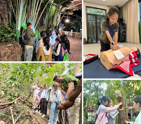在雨林野外的环境,一堂必修课就是学会如何保护自己、生存下去。通过认识植物、触摸植物,找到天然水源;学习原始的取火方式,尝试自己钻出火苗;在导师指导下,用海姆立克急救法救援“队友”。