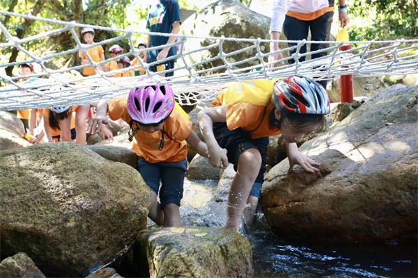 在天然溪流瀑布中,穿上特制的防滑草鞋穿越十大关卡;在水中摸索岩石前进,激发孩子迈开第一步的勇气;耐心攀爬,不在慌乱中急于登顶;最后关头,是对毅力的考验,学会自我鼓励与团队鼓励,往往筋疲力尽的下一转角就是另外一番天地。